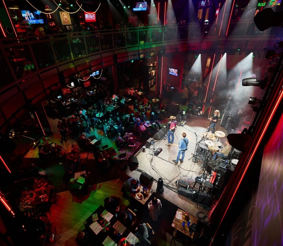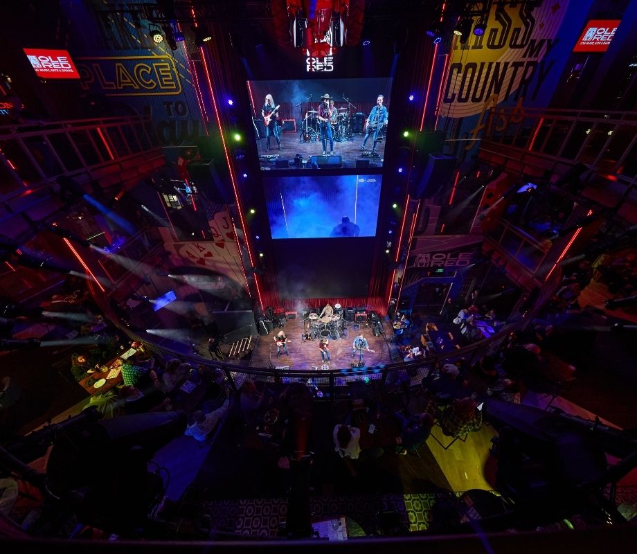 Located in the Grand Bazaar Shops along the Las Vegas Strip, Ole Red Las Vegas is Huitt-Zollars’ third collaboration with Ryman Hospitality Properties, delivering a dynamic four-story, 30,000-square-foot entertainment restaurant directly across from the Bellagio. Designed to immerse guests in live music and Southern hospitality, the venue features a three-story open interior for stage performances, a rooftop bar with its own stage, and a second-level connection to the pedestrian bridge over Las Vegas Boulevard. The project navigated complex site conditions, including a basement tied into an existing utilidor system and a towering digital pylon sign integrated through the building’s structure. Through strategic coordination and innovative design, the team overcame tight timelines and jurisdictional challenges to deliver a standout destination that blends honky-tonk charm with Las Vegas energy.